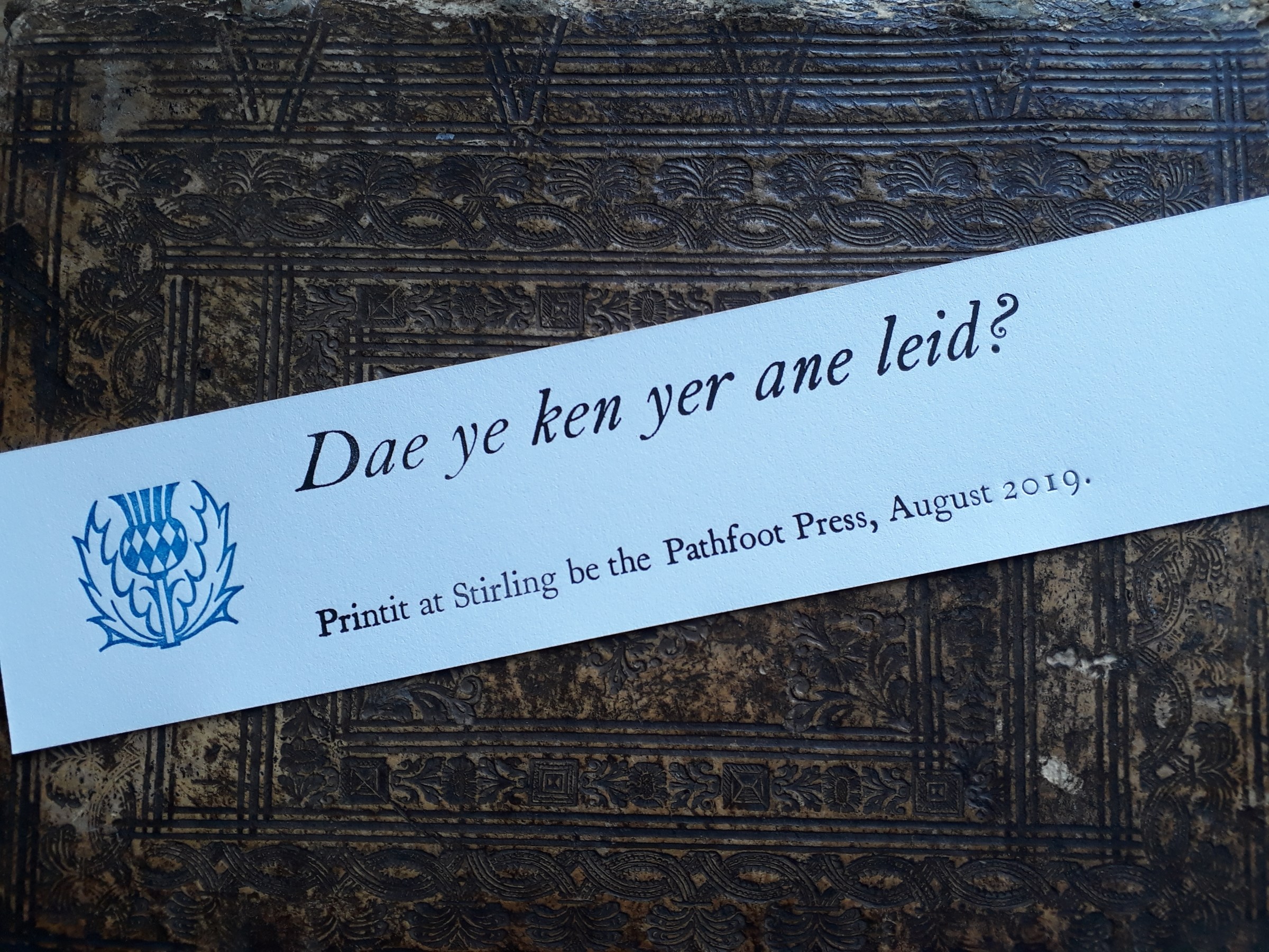 Since it was founded, one of the goals of the Pathfoot Press has been to support Scots-language literature, whether that means printing new work or reprinting old classics. But, as the statistics show, that literature isn’t fully accessible to many people and it’s that paradox which this small project reflects upon.